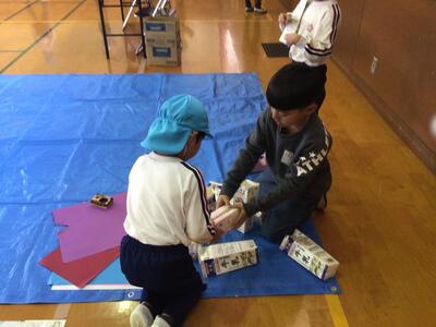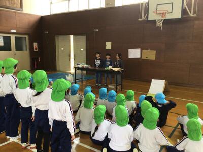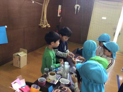1、2年生は、幼稚園の友達に楽しんでもらおうと5つのコーナーに分かれて遊びを考えて、開催しました。