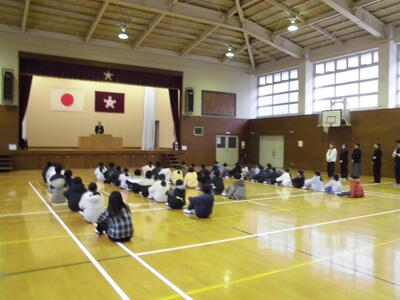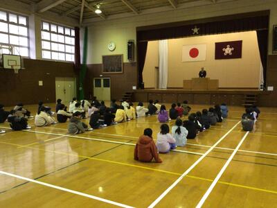 第3学期始業式では、校長先生からのお話を真剣に聴く姿がありました。