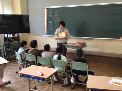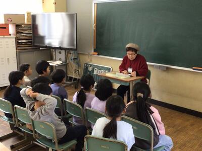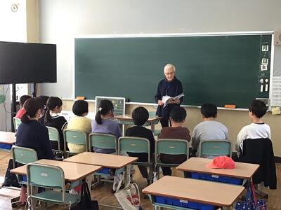 「十二支のはじまり」 こだま会様 投稿: 学校管理者 (16:26) 今年になり初めての読み聞かせ、3名のこだま会の方にお世話になりました。 「十二支のはじまり」を読んでもらったのは1年生。今年は午年ですが、興味があるのは自分たちの干支。 最後まで楽しく読み聞かせしていただきました。 他学年は「ぼくだけのひみつ」「もちもちの木」とどちらも有名な作品でした。 今年度も後1回となります。2月もよろしくお願いいたします。 -