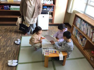 緊張しながら保護者の皆さんに連れられて、図書室へ。