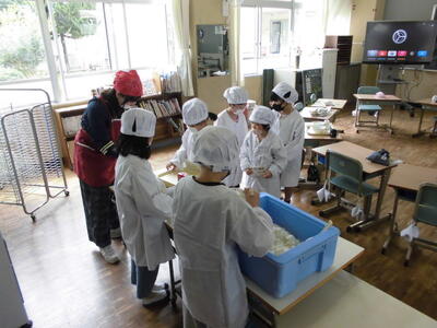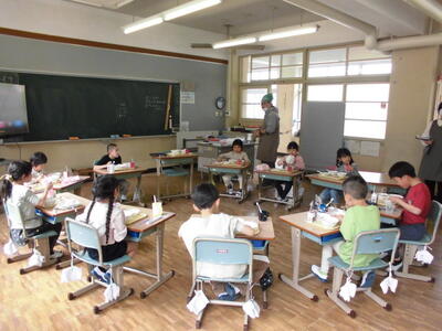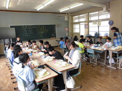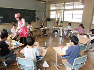 給食スタート! 投稿: 学校管理者 (18:46) 令和8年度の給食が、本日スタートしました! 子どもたちにとって、待ちに待った給食😊 1年生も今日から給食を食べました。 2年生に教えてもらいながら、身支度も配膳も一緒に行いました。 「いただきま~す☺️!」 どの教室からも、元気な声が聞こえてきました。 もりもり食べる池内っ子です! 明日からの給食も、楽しみですね。 -