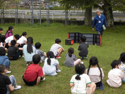 校長先生からの話では、火災が起こったらなぜ避難するのかという話から、災害時に使用する非常用電源についても、実物を見ながら説明を聴きました。